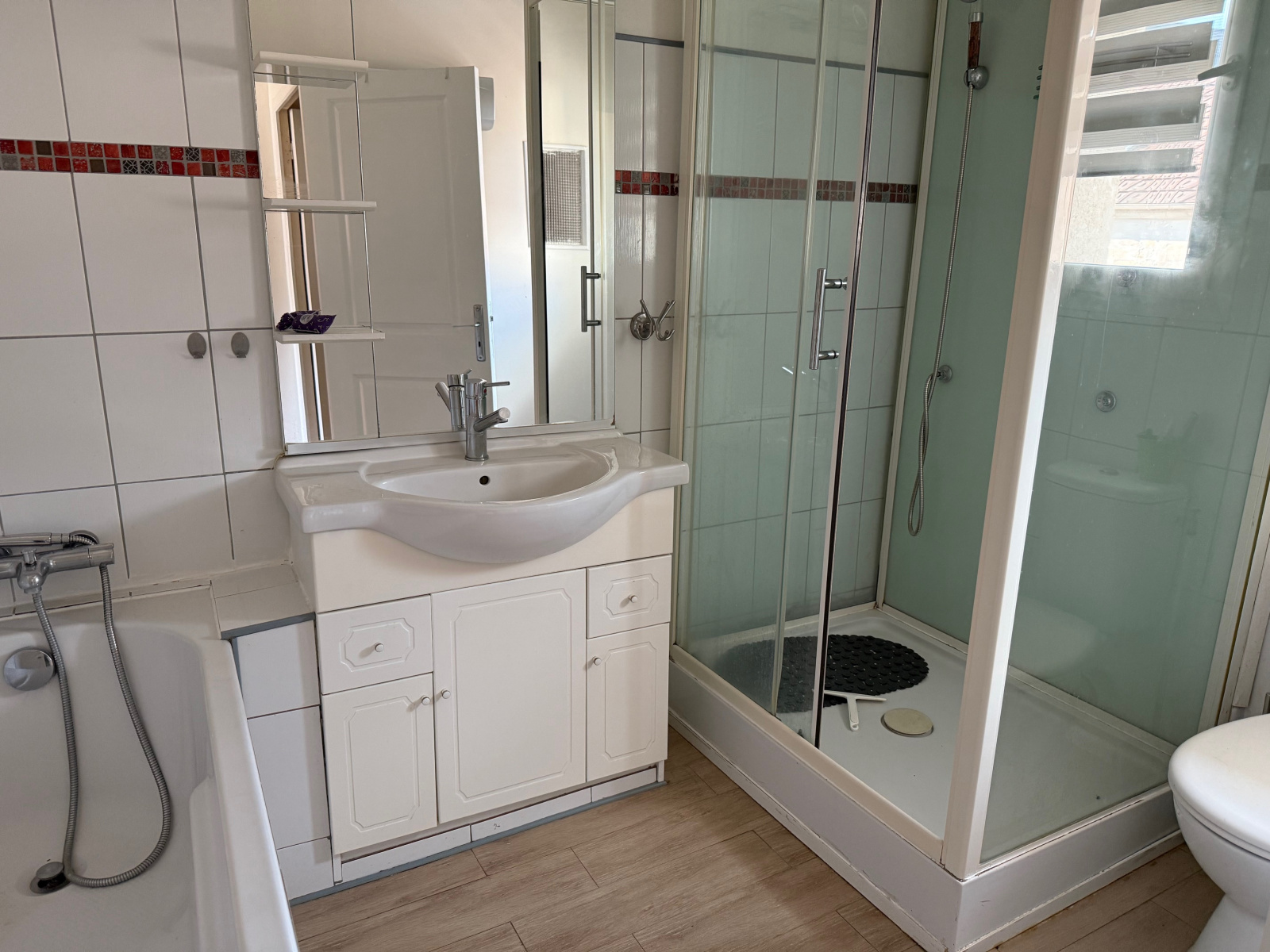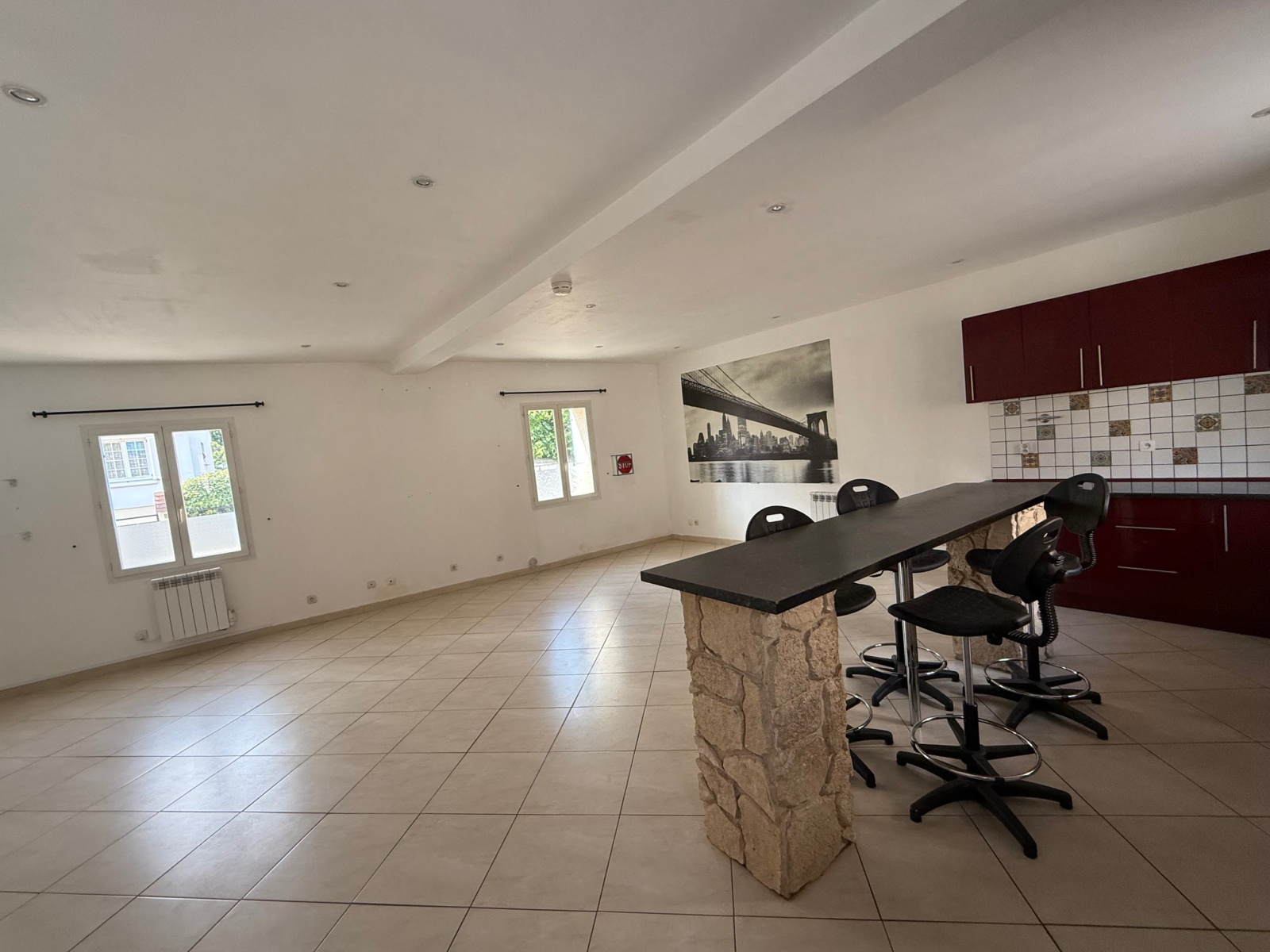 et une maison T5 de 123m² avec grande terrasse, parking et garage, sejour avec cuisine équipée US de 50m², 4 chambres salle de bains, 2wc ...