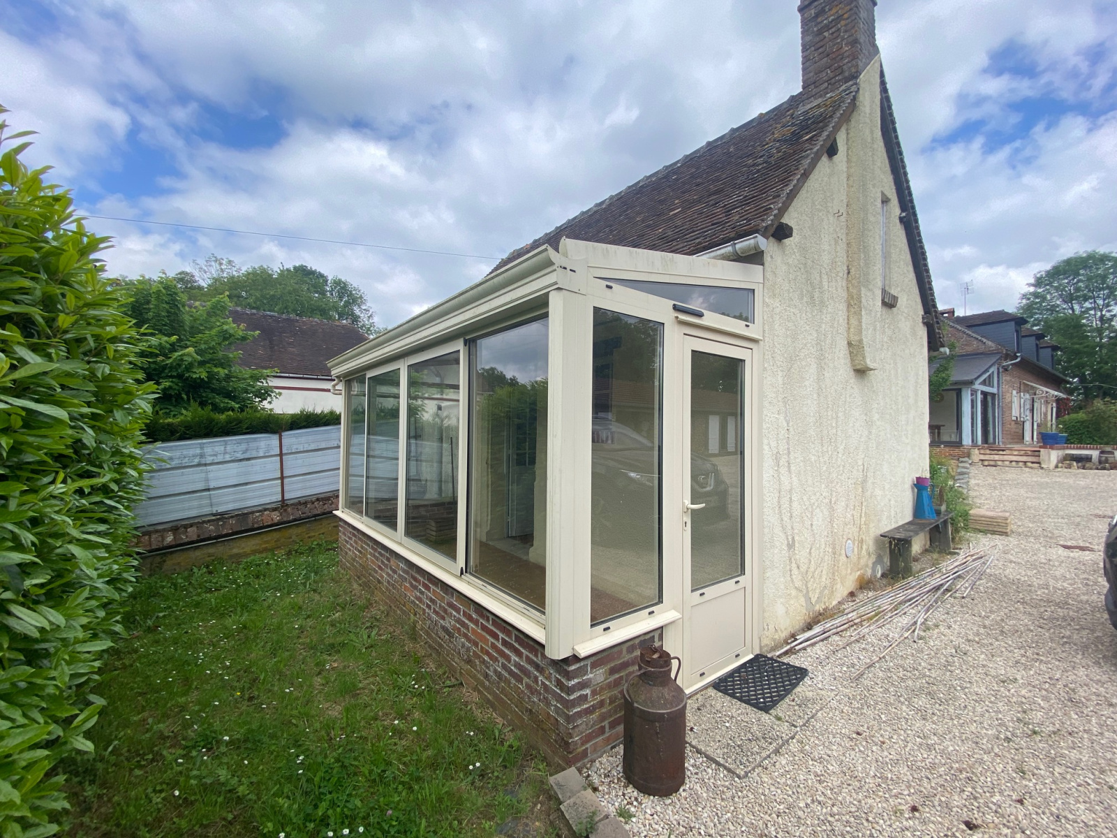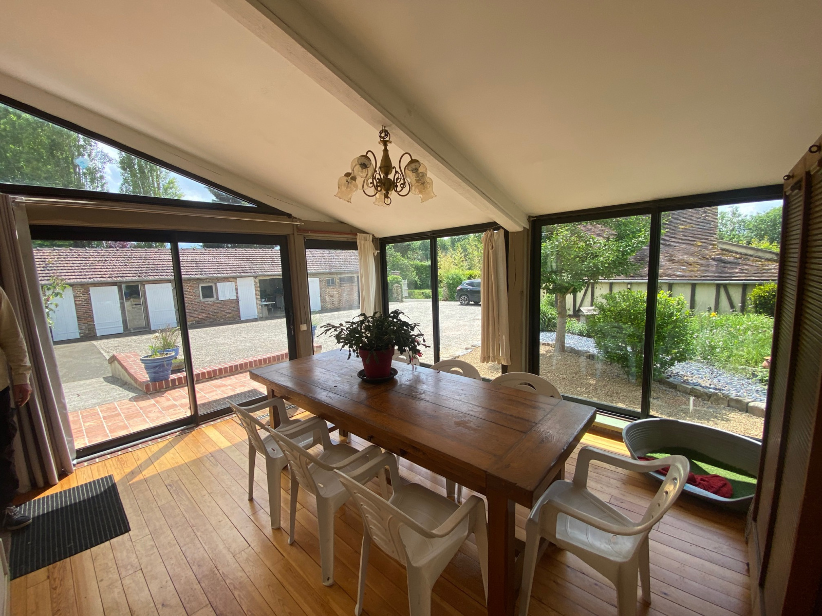 MAISON PRINCIPALE comprenant entrée sous véranda, cuisine équipée, dégagement avec WC, salon salle à manger avec cheminée, suite parentale (chambre, salle d’eau, wc)