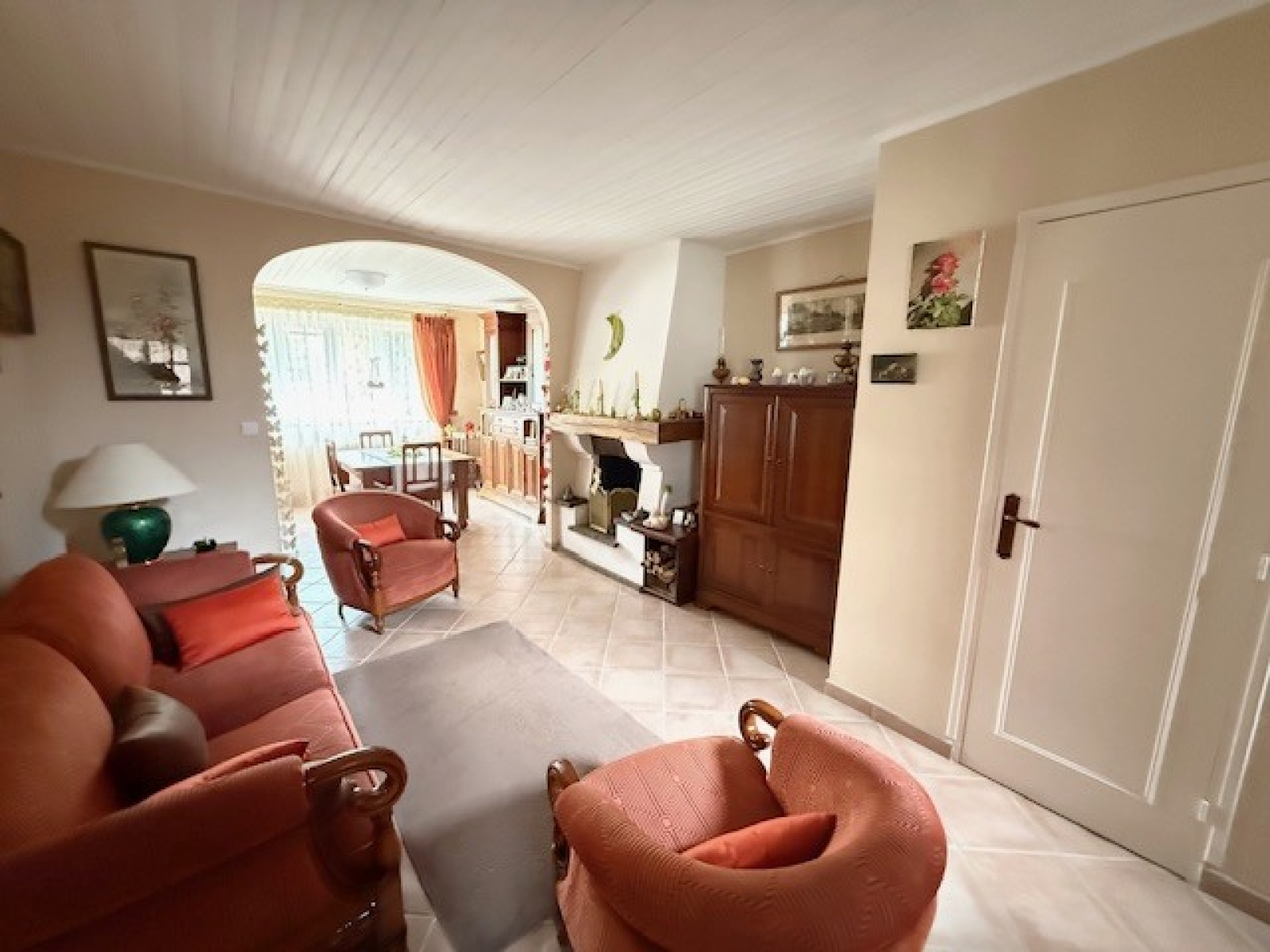Maison comprenant une pièce de vie avec cuisine ouverte d'environ 65 m² avec cheminée, 3/4 chambres, dont une suite parentale.