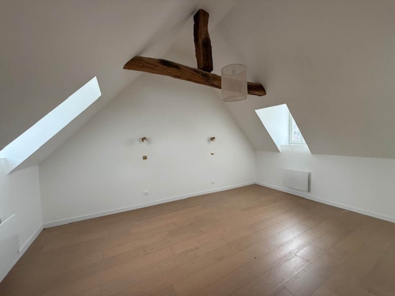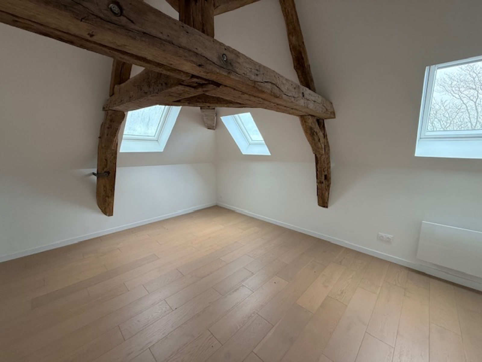 Offrant de beaux volumes, avec ses poutres apportant une atmosphère chaleureuse et authentique.