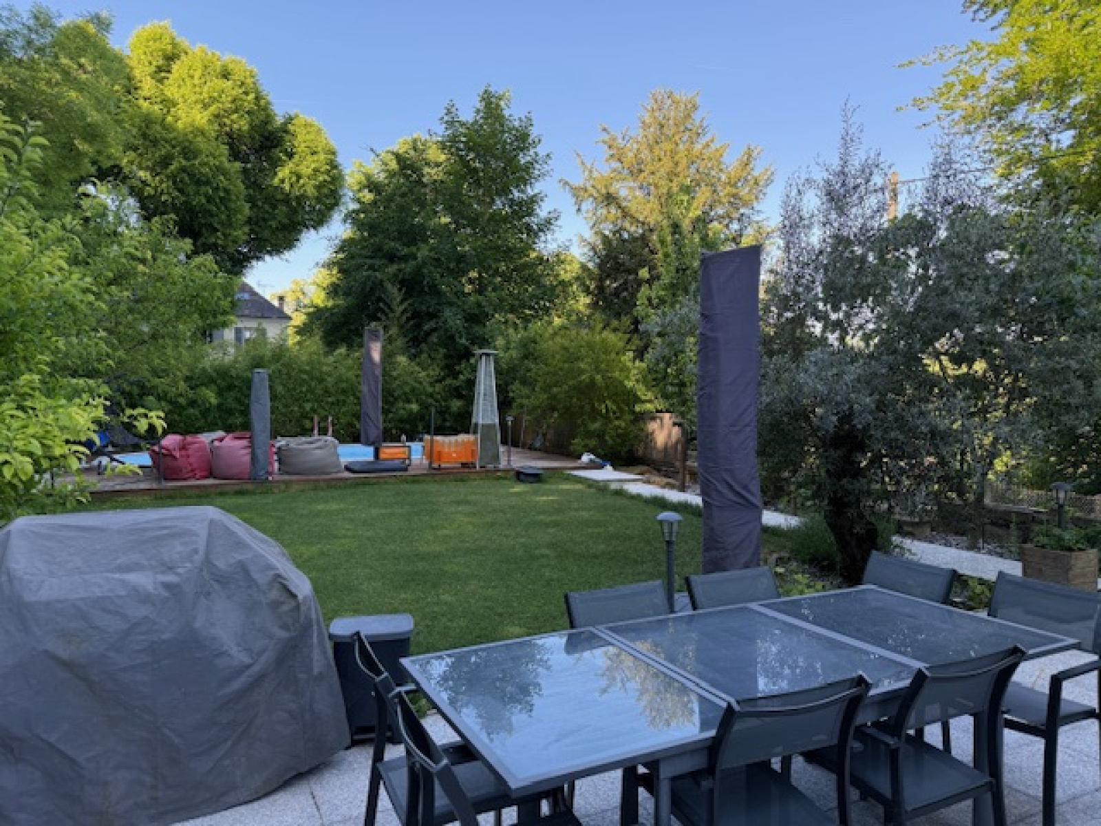 Elle est situé surun Terrain clos de 4500 m² en lisière de la foret domaniale de L'ISLE-ADAM , grande terrasse, 2 caves, parking privé 4/5 places avec 2 branchements pour véhicules électriques.