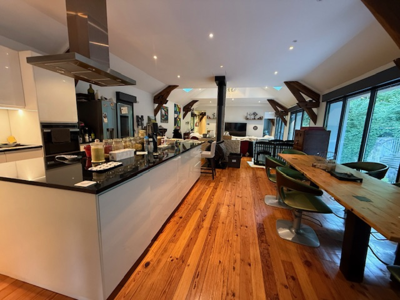 Idéale pour une grande famille ou un projet professionnel, cette propriété unique allie charme, volumes impressionnants et confort moderne. Anciennement une grange, elle a été entièrement rénovée en 2016 avec des matériaux de qualités, pour offrir un lieu de vie à la fois chaleureux et fonctionnel, cette propriété d'environ 320 m² offre 8 pièces dont un triple séjour avec poêle à bois de 75m², cuisine américaine équipée ouverte, grand dressing, salle de sport ou à finir.